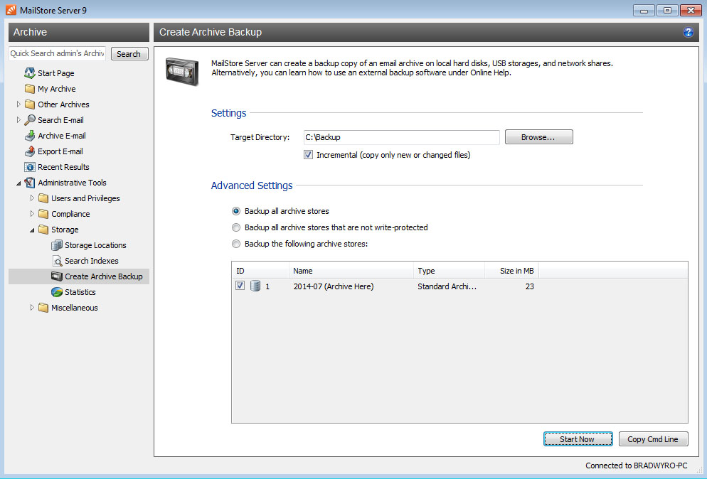 MailStore – Tạo Sao lưu Lưu trữ