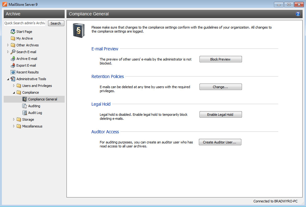 MailStore – Tính năng tuân thủ