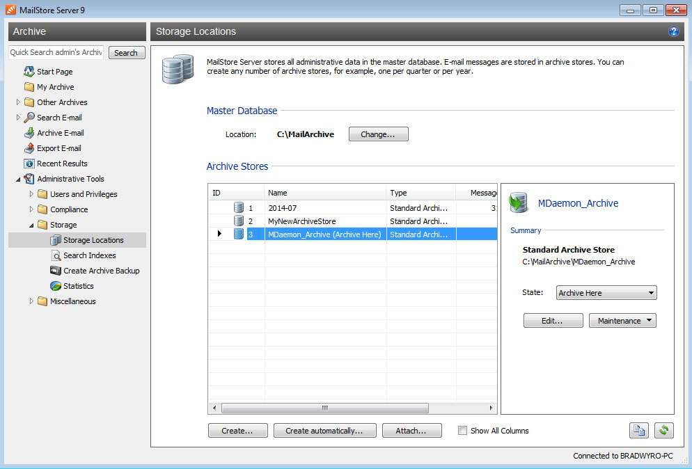 MailStore – Vị trí lưu trữ